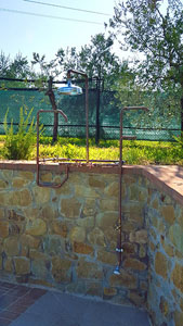 POOL (Privatbenutzung): 12 x 5 m, geöffnet vom 18.07.15-25.09.15. Poolumgebung: gefliest, mit Grünfläche, Stühlen und Liegestuhl, 6 Sonnenliegen, 2 Sonnenschirme, Außendusche.